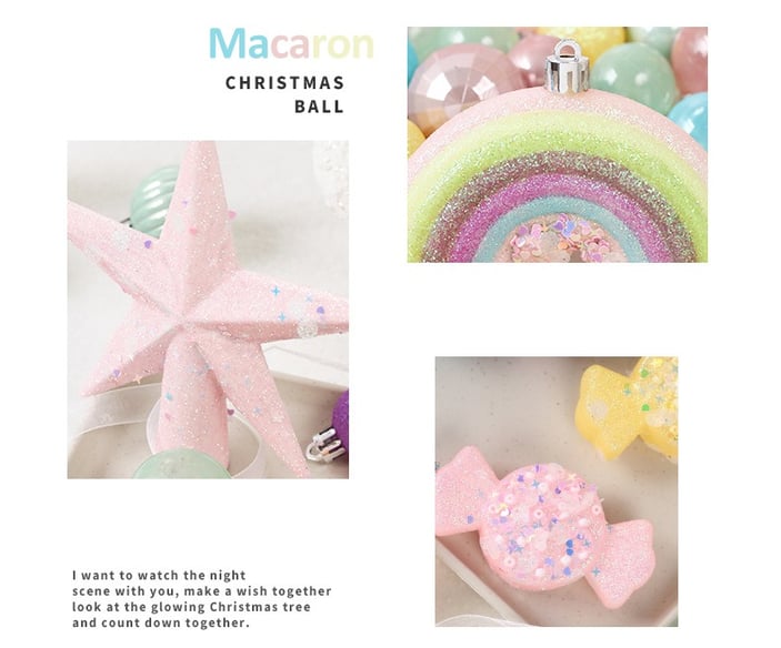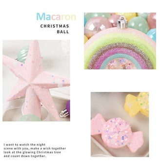 The Macaron Color Christmas Balls are the perfect addition to your holiday decorations. These balls are not only festive and vibrant, but they also feature cute and lovely heart designs. Made in a variety of pastel hues, they add a touch of whimsy to any Christmas tree. Hang them up and watch as they catch the light, creating a magical and joyful ambiance in your home. These charming ornaments are sure to bring a smile to everyone's face and make your Christmas celebrations even more special. Whether you choose to use them as traditional tree decorations or as unique accents throughout your home, these Macaron Color Christmas Balls are a delightful way to spread the holiday spirit.